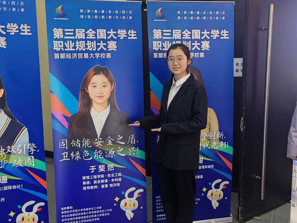 近日,第三届全国大学生职业规划大赛校级决赛落幕。我院2023级安全工程(注安师)专业本科生于斐然凭借清晰职业定位、详实规划方案以及出色现场表现斩获金奖,顺利晋级北京市赛,指导教师富蕾、程开玮获评“优秀指导教师”。