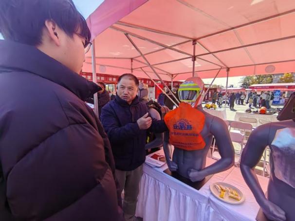 支部党员和积极分子自主参观了消防设备展示区。讲解员对消防装备进行了细致解说,深入解读了各类灭火服装从面料的防火阻燃特性到配件的安全细节。现场演示了灭火时关键设备的使用流程,并指导大家分别尝试穿戴。