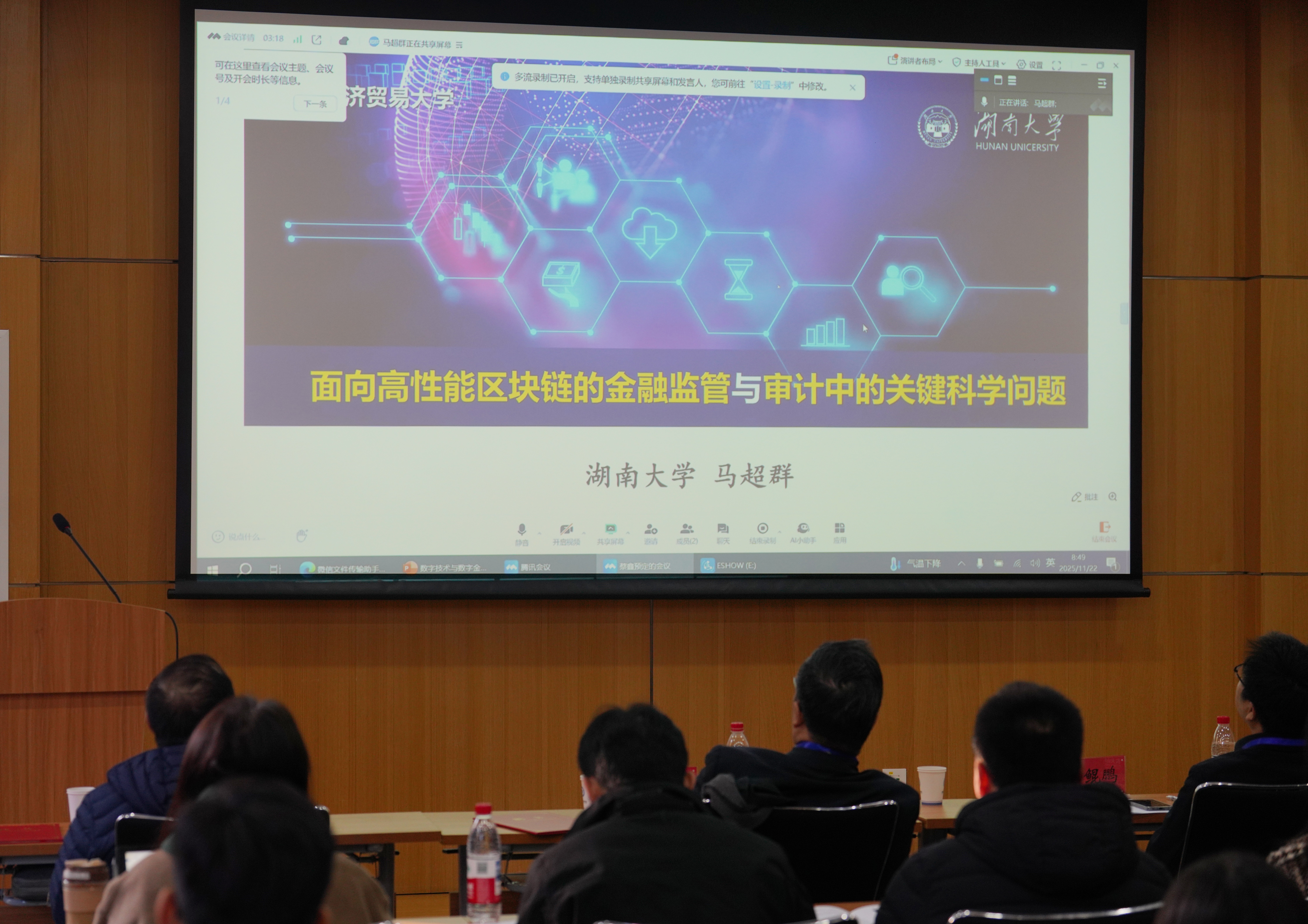 湖南大学马超群教授作了题为“面向高性能区块链的金融监管与审计中的关键科学问题”的线上报告,系统分析了区块链技术驱动下数字金融的发展趋势,并重点介绍团队在金融监管和审计等领域的研究成果与实践探索。