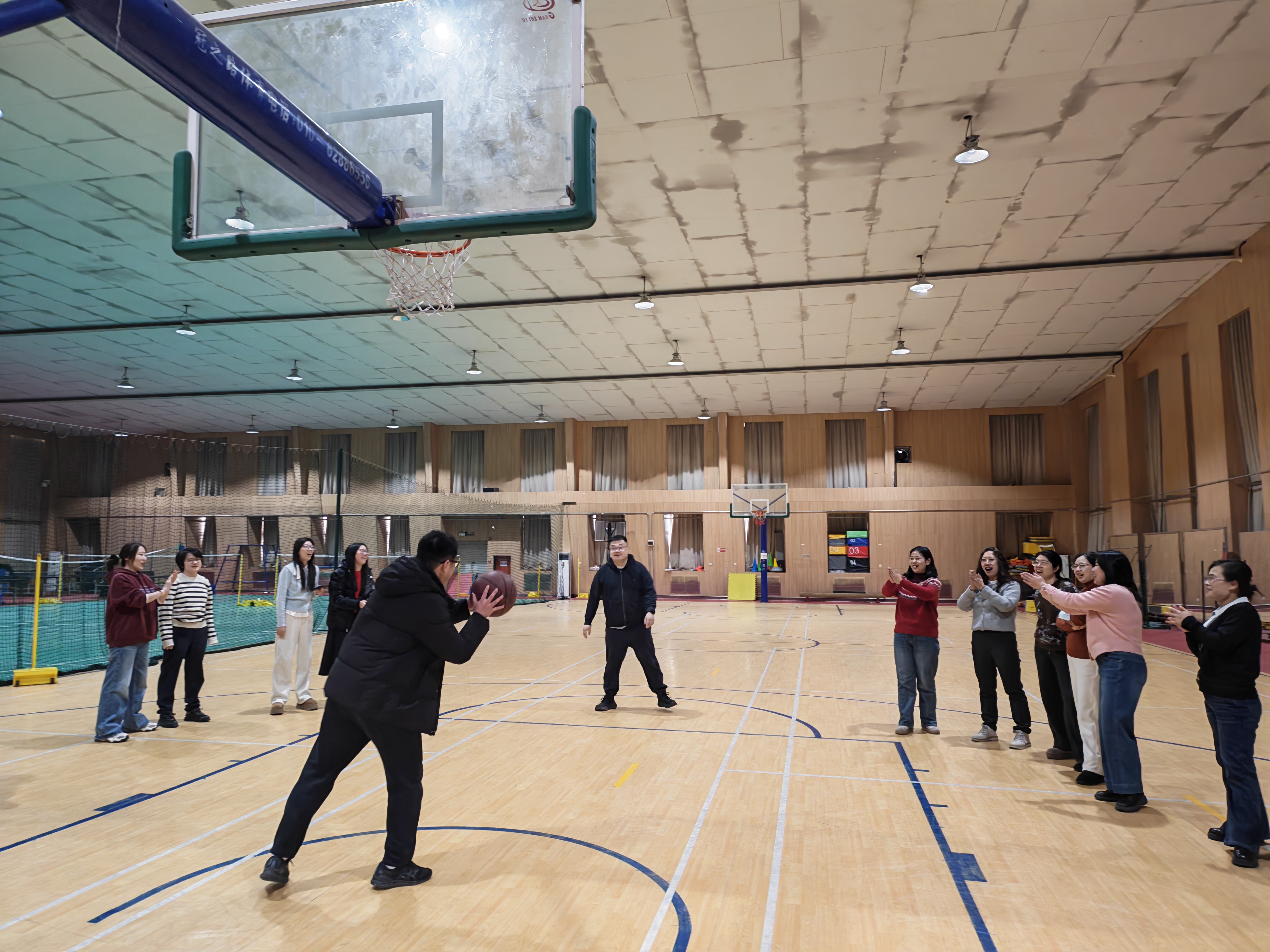 本次活动以“锻炼身体、放松身心、增进交流”为宗旨,设置了投篮比赛和羽毛球友谊赛两个项目。比赛形式以趣味性和参与性为主,让老师们在轻松愉快的氛围中享受运动带来的快乐。活动现场气氛热烈。投篮比赛环节中,老师们依次上场、沉着出手,篮球在空中划出优美弧线,引来阵阵欢呼与掌声。羽毛球友谊赛同样精彩纷呈,参赛教师挥拍对阵、配合默契,既切磋球技,又在交流互动中增进了友谊。