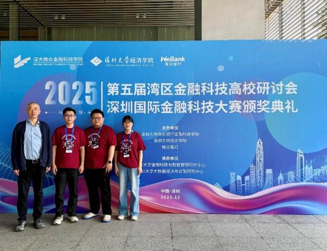 12月5日至12月6日,2025国际金融科技大学生挑战赛全国十强总决赛在广东深圳举行。本届赛事由深圳市地方金融管理局战略指导,深大微众金融科技学院、微众银行、InfoQ 极客传媒、狗熊会等机构联合举办,赛程历时两个月,来自全国 270 所高校的1709名高校学生、372 支参赛队伍参与。其中,人工智能赛道决赛竞争尤为激烈,仅4份作品获奖。管理工程学院师生组建的AI4Fin团队为期两天“36 小时黑客松”封闭式开发,凭借过硬的技术实力以及决赛现场创新的方案设计和专业的展示答辩,最终以第二名的成绩荣获人工智能赛道二等奖。